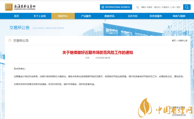 8月5日,上金所發(fā)布公告稱,近期黃金價(jià)格創(chuàng)歷史新高,白銀價(jià)格持續(xù)高位大幅波動(dòng)。請(qǐng)各會(huì)員單位繼續(xù)提高風(fēng)險(xiǎn)防范意識(shí),做細(xì)做好風(fēng)險(xiǎn)應(yīng)急預(yù)案,提示投資者做好風(fēng)險(xiǎn)防范工作,合理控制倉(cāng)位,理性投資。
