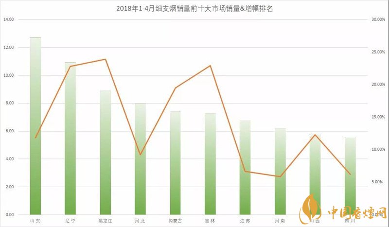 眾所周知近年來(lái)細(xì)支煙在柜內(nèi)可謂十分十分盛行!細(xì)支煙得到了消費(fèi)者的廣泛接受,并以燎原之勢(shì)把外煙帶來(lái)的新鮮感迅速轉(zhuǎn)換為民族品牌的認(rèn)同度。如今東三省細(xì)支煙再次脫銷,為了更好的了解,下面香煙網(wǎng)小編為大家整理介紹2018年1-4月細(xì)支煙銷量銷售額前十大市場(chǎng)排名。